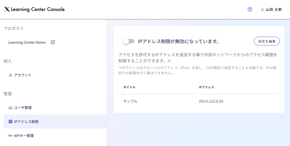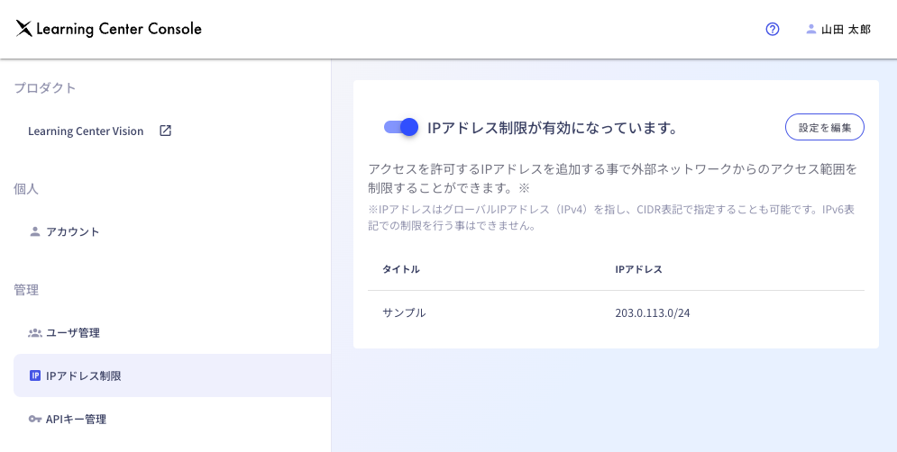 IPアドレス制限の追加・編集・削除