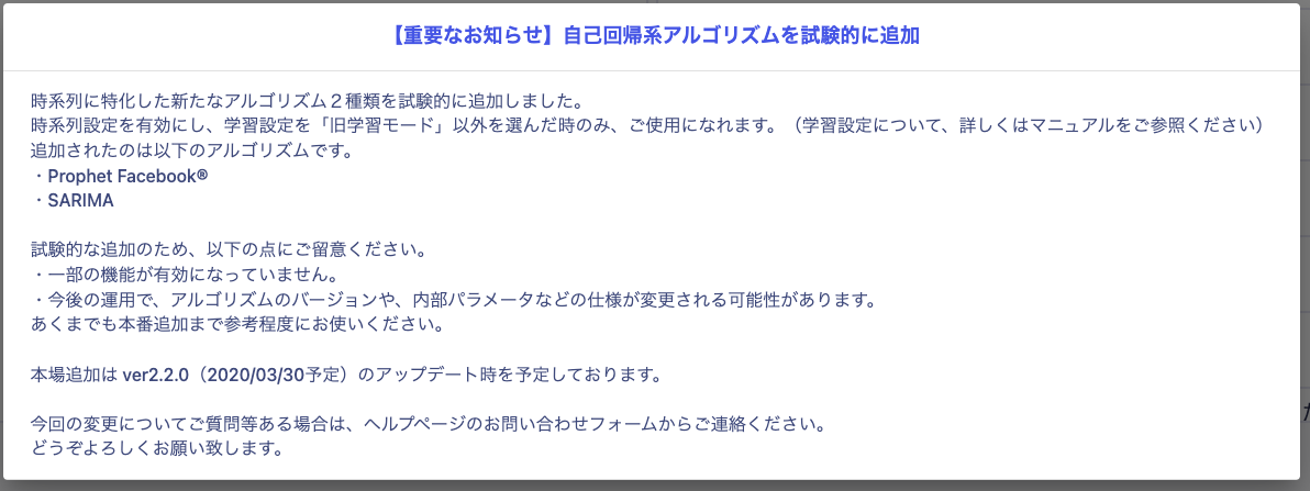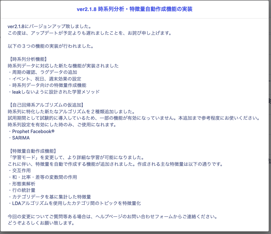 ver2.1.8 時系列分析・特徴量自動作成機能の実装