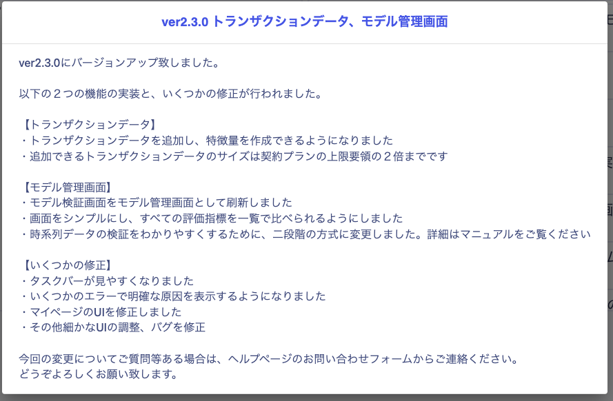 ver2.3.0 トランザクションデータ、モデル管理画面