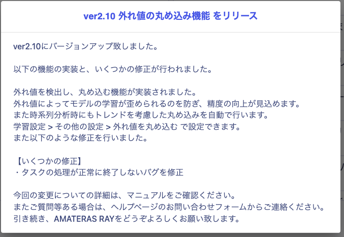 学習設定 > その他の設定 > 外れ値を丸め込む で設定できます。