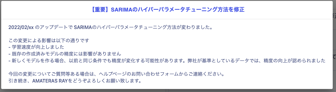 2022/02/xx のアップデートで SARIMAのハイパーパラメータチューニング方法が変わりました。